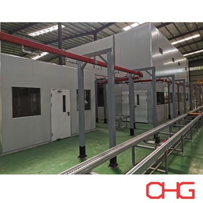 Ön işlem bölümü, ağır dolap bileşenlerinin stabil taşınması için bir kızak tipi zemin konveyör sistemi kullanırken, toz püskürtme ve kürleme bölümleri, kaplama tekdüzeliğini ve üretim verimliliğini sağlamak için sabit hızda çalışan bir üst konveyör sistemi benimser.